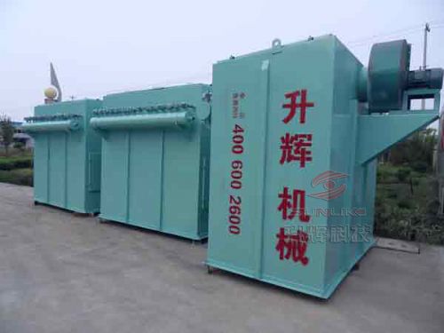 由壳体、灰斗、排灰装置、支架和脉冲清灰系统等部分组成。当含尘气体从风口进入收尘器后,首先碰到进出风口中间的斜隔板,气流便转向流入灰斗,同时气流速度变慢,由于惯性作用,使用气体中粗颗粒粉尘直接落入灰斗,起到预收尘的作用,进入灰斗的气流随后折而向上通过内部装有金属骨架的滤袋,粉尘被捕集在滤袋的外表面,净化后的气体进入滤袋室上部的清洁室,汇集到出