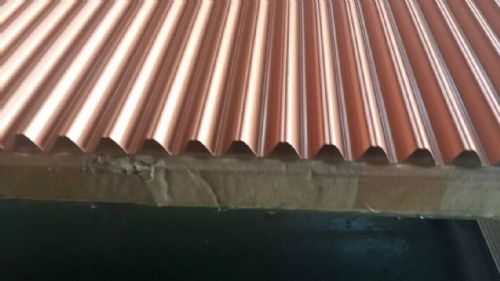 铝板经过瓦楞机辊压成瓦楞状或梯形状。具有较高的挺度、抗压强度、质量轻等特点。