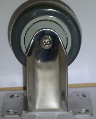 35) 不锈钢特尔灵TPR:轮体是TPR包PP、尺寸3-5寸、载重100-140KG、特尔灵轴承,安装方式:平底 (无防尘盖) 金属边刹、塑料顶刹