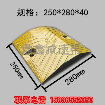 具有减震性,抗压性很好,寿命长,对车磨损少,黄黑相间,色彩分明,可二次利用等特点。使用减速带产品之后,很大程度减少了各交通要道口的事故发生,是交通安全的新型*设施
