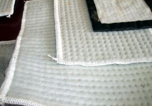 无纺布之间,用针刺法制成的膨润土防渗垫可形成许多小的纤维空间,是膨润土颗粒不能像一个方向流动,遇水时在垫内形成均匀高密度的胶状防水层,有效的防止水的渗漏。