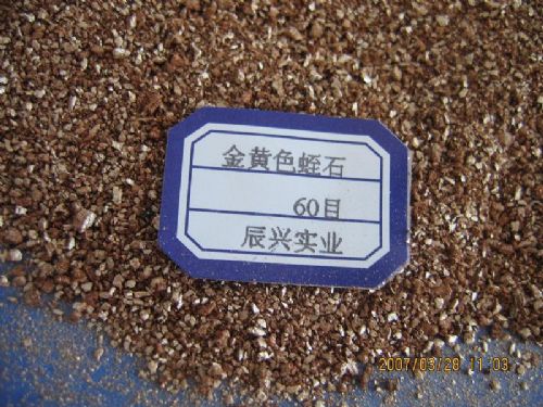 蛭石在800-1000℃下焙烧,体积可迅速增大8-15倍,*高达30倍。颜色变为金黄或银白,生成一种质地疏松的膨胀蛭石。膨胀蛭石具有耐热保温,保冷防冻和隔声的良好性能,容量为90-145kg/m3,热导率0.047-0.081W/(m.K),耐火度1300-1350℃,声音频率512Hz时的吸声系数为0.53-0.63,在相对湿度95%-100%的环境下,经24h吸湿为1.1%,在水中浸泡1h,其质量吸水率为265%,体积吸水率为40.6%.焙烧点为1370-1400℃,无味、*、不腐烂变质、抗菌、但不耐酸,介电特性也较差。比热容/J.(kg.K)-1 0.157