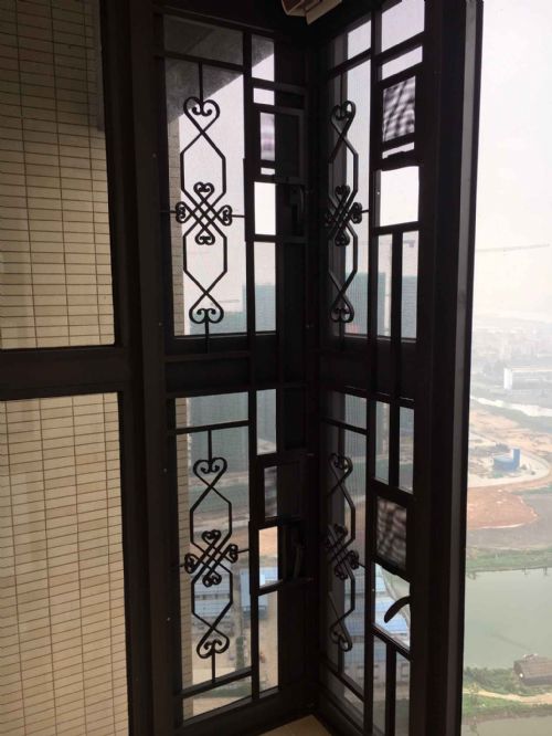 玻璃窗扇的同时可以配置金刚防护网,框中间为