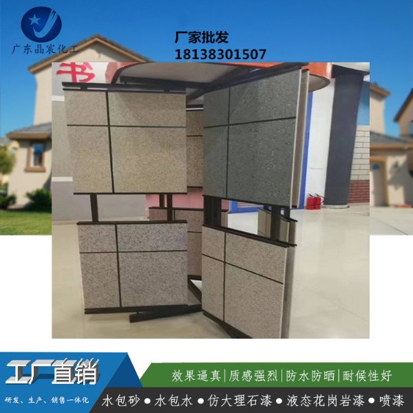 (3)耐沾污性好:由于我国不同地区环境条件差异较大,对于一些重工业、矿业发达的城市,由于大气中灰尘及其他悬浮物质较多,会使易沾污涂层失去原有的装饰效果,从而影响建筑物外貌。液态花钢岩--水包砂在研发前期就考虑到这些因素,因此,液态花钢岩具有很好的耐沾污性,涂层不易被污染且污染后容易清洗掉。