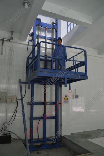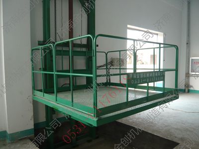 主要用于楼层间高空货物运输。主要用在载重量轻,台面尺寸要求比较小的环境.载重1-3吨,升高高度1-25米.室内、室外均可安装导轨式
