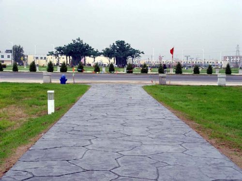 透水混凝土的手段,使其既具备散水功能又达到美观效果,既可美化路沿又可起到排水作用。同时,在人行道路铺装中使用盲道模具压膜地坪专为残疾人铺设盲道,压膜地坪不仅美观而且起到盲道的作用。
