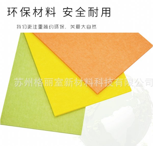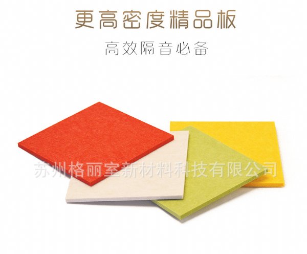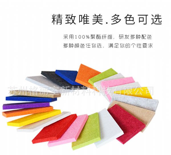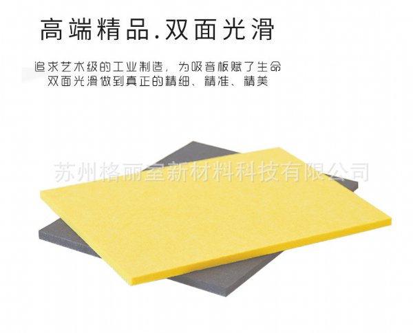 是一种理想的吸声装饰材料。其原料为100%的聚酯纤维,具有环保、阻燃、隔热、保温、防潮、防霉变、易除尘、易切割、可拼花、施工简便、性价比优等特点,有多种花纹和颜色可供选择,可满足不同风格和层次的