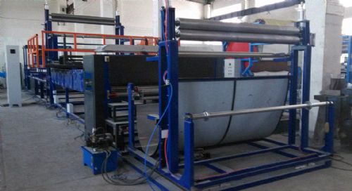 工艺流程:放卷→撒粉→加热烘培熔融→复合→收卷