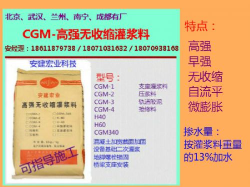 (2)对于小空间二次灌注,直接用CGM加水拌杂成灌浆料,加水量为CGM的13~15%。对大空间二次贯注,可选用CGM-2豆石型灌浆料。