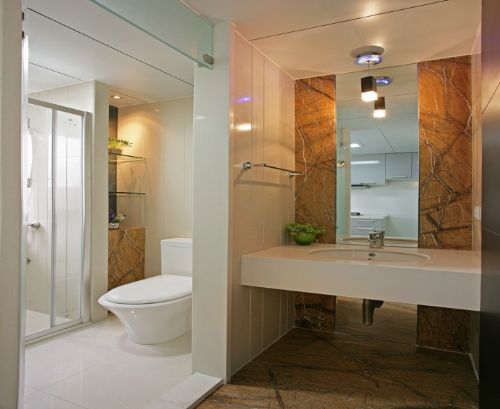 浴缸的设计手法,让两个机能设备也能是一体成形的空间装置艺术。