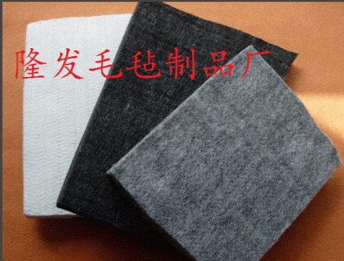 材料:用高强度合成纤维和羊毛针刺而成。机械性能优良,纤维不易折断,耐磨,耐老化,不起毛。长期使用仍保持毛毡的弹性及韧性。