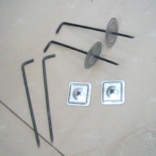 是由上等低碳钢钉和锁片构成,大量应用于电力保温上.规格:底片直径为3.2mm,3.5mm,4mm,5mm,6mm.锁片厚度可根据拥护要求定做.规格一般为50mm,钉子长度可根据客户要求定做,加工范围在90-500mm之间,其使用方法是把带钩的一端焊接在