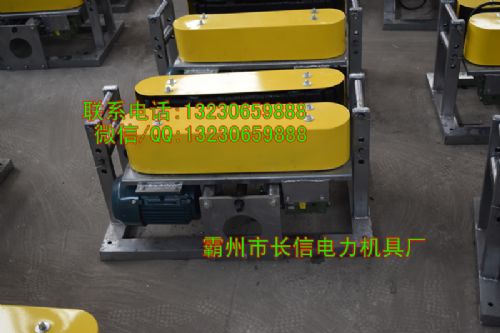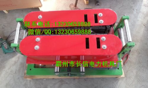 滑轮压到橡胶驱动轮中,上下双作用推动电缆,摩擦系数小,输送力大,对电缆无丝毫损伤。锥形驱动轮间隙可调,适用于电缆直径从25mm-190mm的电缆,电缆敷设完毕,由于机器高度只有340mm,所以从机器内取出电缆也很方便,并且不会造成电缆弯曲。电缆