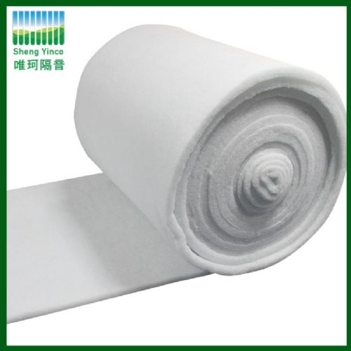 聚酯纤维吸音棉是通过特殊的工艺制造,由超细的聚酯纤维组成,具有立体网状多孔结构,纤维平均细度可达1-2微米以下,这些优势赋予环保聚酯纤维吸音棉有更多的相互连接的孔隙,在摩擦损耗等作用下,其声能被转化成热能从而将声音被有效的加以抑制,也使得环保聚酯纤维吸音棉具有了比现有的