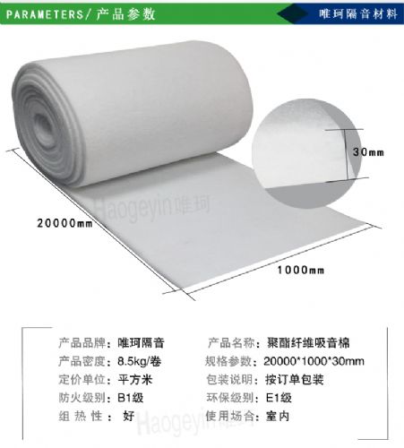 2:隔音棉毡规格:1000*20000*30mm一包20米,20平方米重9kg左右
