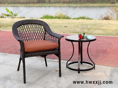 桌椅采用高档进口环保PE藤条,透气性好,柔韧性佳,舒适凉爽,久坐不凹不易变形,而且藤条色泽稳定,不发霉,容易清洗。