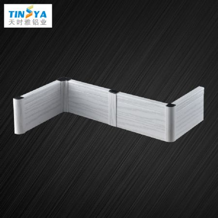铝材精制而成,富有金属 质感,强度高,保证**褪色,**变形,该型材厚度1.0mm、高度有6cm、8cm、10cm,每条长度均为2.5米,背面的两条固定卡扣槽及防水