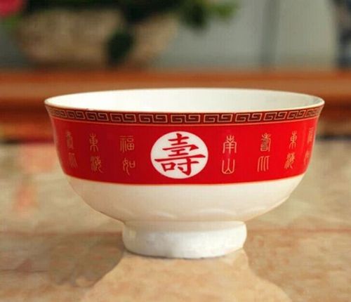 寿碗的来历:“碗”谐音同“晚”,寓意延年益寿。大寿之日,给众邻亲戚送寿碗寿杯,以赠人们一个好兆头。据说,从前在参加老人寿辰时,有些讨寿者喝的酩酊大醉时,就将寿碗装进衣袋,或大抢出手,不仅拿寿碗,而且拿碗盏,此举主家并不责怪,反认为“有福有寿”。有的人宴后向主人讨要寿碗,也有主人主动赠庆寿者“寿碗”一对,使受赠者沾老寿星之福,俗说有“延年益寿”之兆,是一种美好的祝愿。
