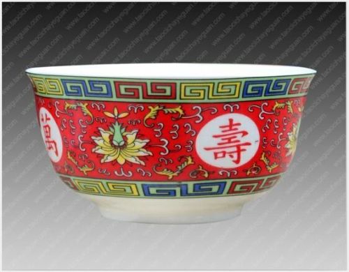 在中国60、70、80级以上满十的生日称为寿辰,有些子女为了尽一份孝道会特定去定做一些陶瓷寿碗,在上面定做一些祝寿的文字,以及图案,文字如“福如东海,寿比南山”图案以般一寿星抱寿桃为多数!有的人还会定做陶瓷碗来送礼,在瓷碗上写上寿星的名字,和祝福,带待酒席完后发给各位亲朋好友使用!