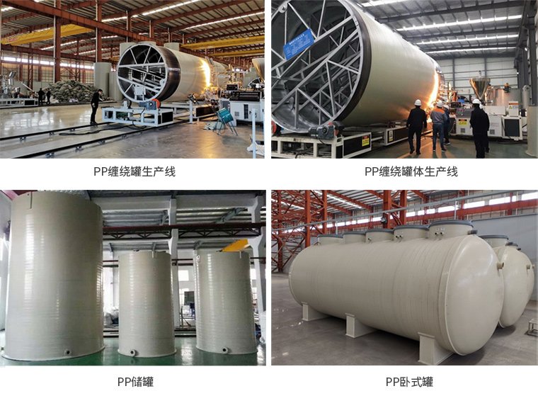 1、PP缠绕储罐采用了挤出缠绕无焊缝工艺,而普通的聚丙烯储罐采用的则是普通的挤出工艺。