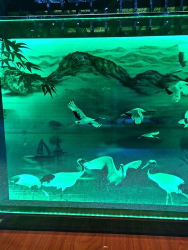 大幅面激光内雕,是一种以电子技术、激光技术、LED技术为基础的新型建材产品,主要应用于