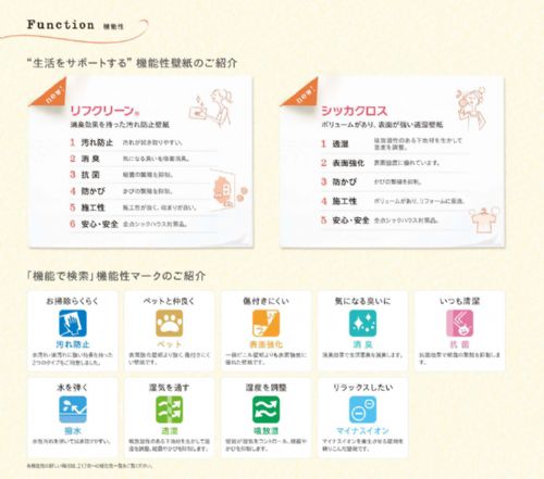 日本东京SINCOL株式会社是日本三大室内装饰材料制造公司之一,技术实力雄厚,规模宏大, 日本本土就拥有北至北海道的札幌市,南至冲绳县浦添市的100多个工场,其研制生产的新型高科技绿色复合型环保壁纸,充分考虑对居住环境以及对人体健康的影响,使产品多功能化,为日本环境保护协会“绿色标志”产品。SINCOL公司每年生产的2千多款壁纸,有绝对阻燃的、防火一级的壁纸;有适合于人群出入频繁的耐脏、耐磨损壁纸;有适合于潮湿环境及卫生间等防水、透湿、防结露壁纸;有适合于医院、幼儿园等卫生条件要求较高场所的抗菌、消臭壁纸。特别是发光、蓄光壁纸则充满浪漫情调,适用于卡拉0K、夜总会等场所,也可用于家居,卧室、儿童卧室等。绘画壁纸则尽显主人情调,令人耳目一新。加入特殊矿物的带负离子成份的