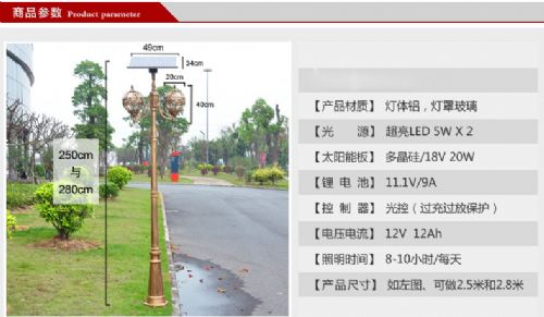 、太阳能户外灯,产品广泛应用于道路照明工程、房地产户外照明、园林景观照明、建筑物户外亮化工程、市政工程、公园景观照明、广场户外照明、别墅户外照明等场所!欢迎来图来电订做各种户外照明