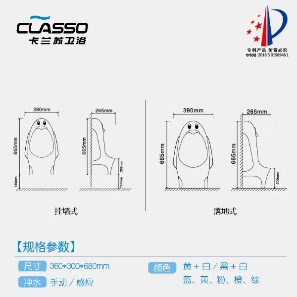 尺寸:360x300x680mm 可选颜色:黄+白 黑+白 可选墙排或地排