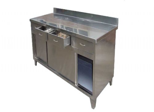 不锈钢工作台。有些可以铺木板,增架承重量,然后包木板,包边,采用正面排风,排风板整体可拆卸。不锈钢工作台可以配光管,从而达到照明效果。