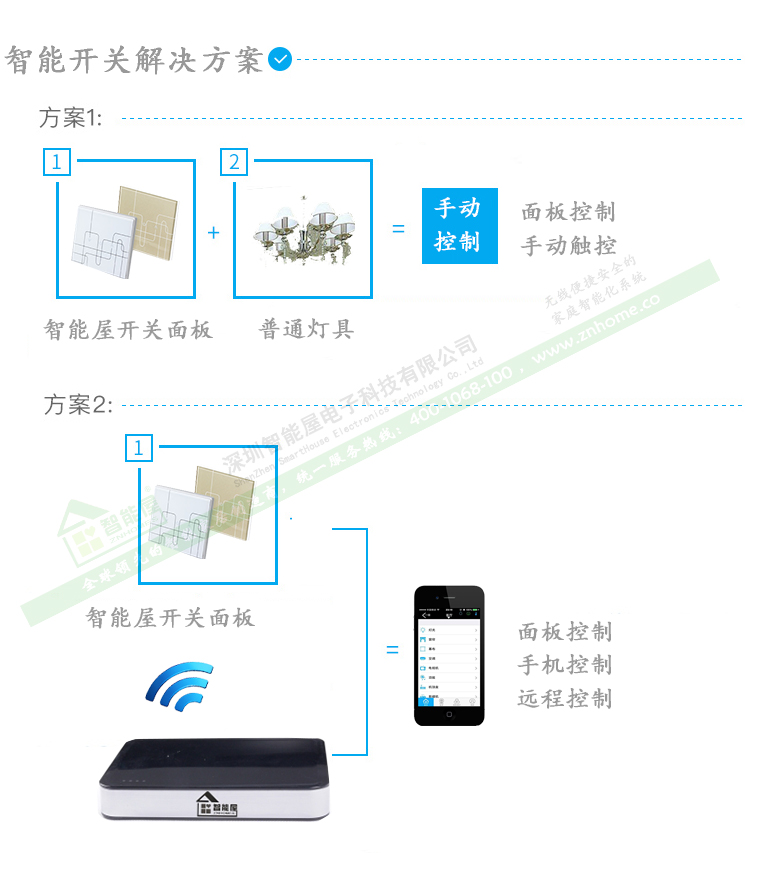 开关面板及智能屋APP就可以用您自己的手机远程控制来实现一键式灯光场景效果。
