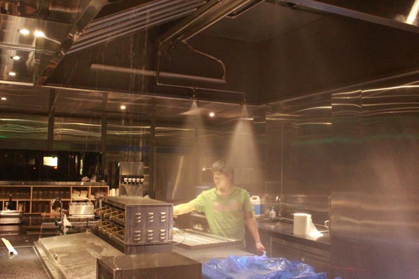 厨房设备自动灭火装置所保护的范围:安装自动灭火装置的灶台烟锅和油烟罩和排油烟