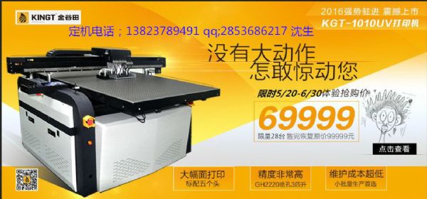 彩印机市场的全面把控,金谷田决定,对平板彩印机市场投入一款拥有;高配置 高性能 高速度 满足高精密彩印的机器金谷田KGT-1010。于2016年5月25月正式预约销售,时间一个月,限量28台。