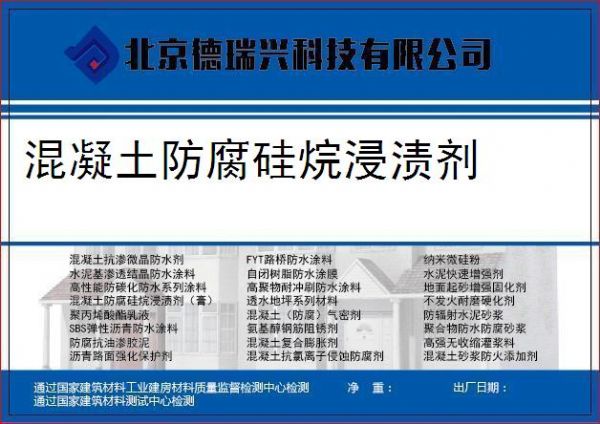 北京德瑞兴混凝土硅烷保护剂招经销商 按照应用领域分为海港工程混凝土*产品、公路工程混凝土结构*产品及铁路工程混凝土结构*产品,尤其适用于在恶劣环境中使用的高标号混凝土结构,如海港码头,受盐雾、化冰盐侵蚀的公路、立交桥、