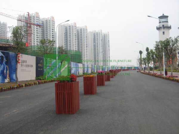 花箱 正方形塑木环保木花箱 道路街道种植花箱