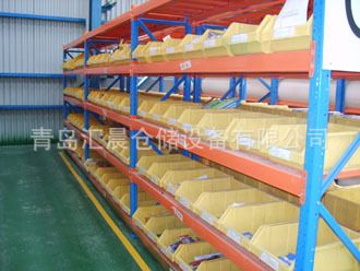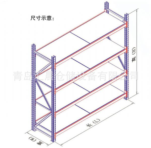 ,层间距平均可调,货架高度通常在2.5m以下,否则辅以工具(如辅以登高车则可设置在3M左右)。单元货架深度不宜过深,便于取货。按其单元货架每层的载重量可分为轻、中、重型搁板式货架,层板主要为钢层板和木层板两种