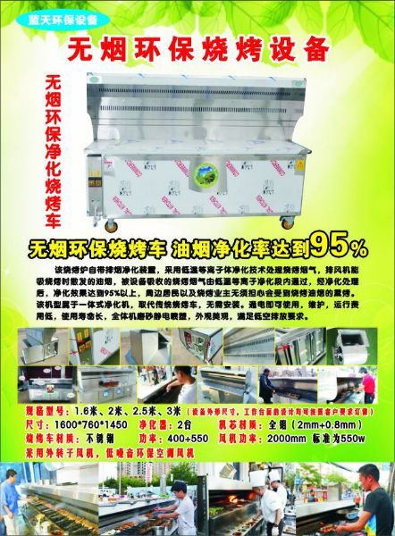 规格型号,1.5米,2米,2.5米,3米。可根据客户需求定制加工不同尺寸。我们是生产厂家,三台以上皆为代理商价格。无烟净化烧烤车,该机型属于一体式净化机,取代传统烧烤车,无需安装,操作简单,通电即可使用,运行费用低,使用寿命长,外形美观,满足低空排放要求。