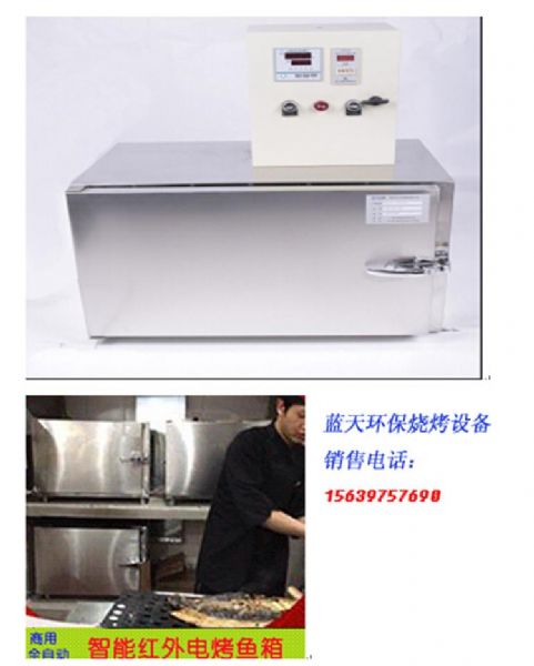 是有蓝天环保烧烤设备专业生产新型智能红外光烤鱼箱,220v家用电供电,加热功率4000w,智能间断加热,每小时3度电,