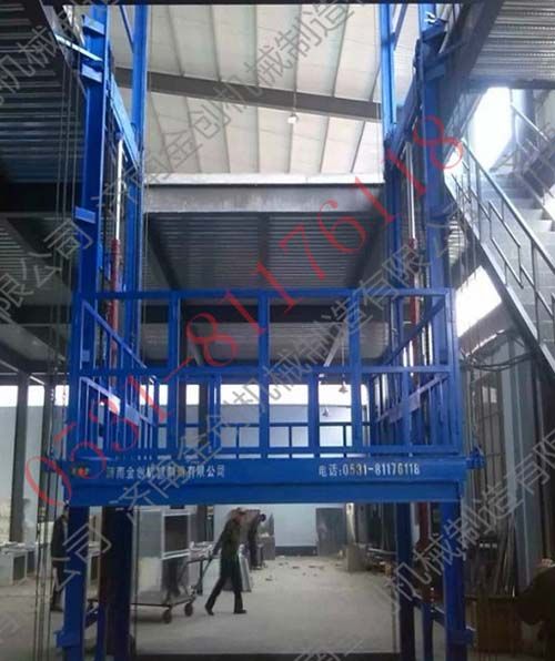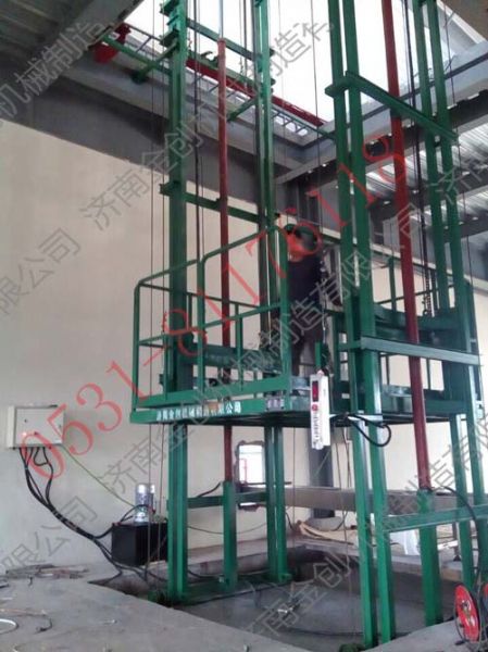 主要用于楼层间高空货物运输。主要用在载重量轻,台面尺寸要求比较小的环境.载重1-3吨,升高高度1-25米.室内、室外均可安装导轨式