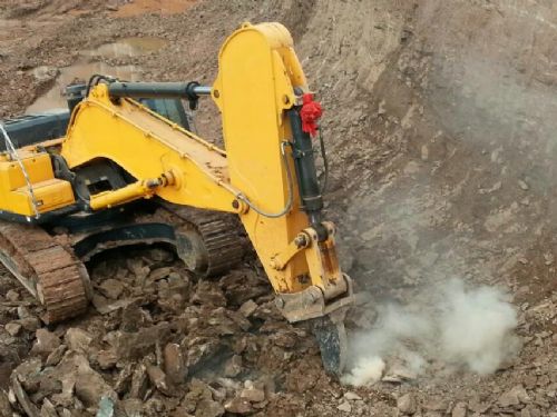 以500挖机带岩石臂和四台360-380挖机带165破碎器在页岩风化岩和类似同等工矿条件下施工,同等的工作破碎量,