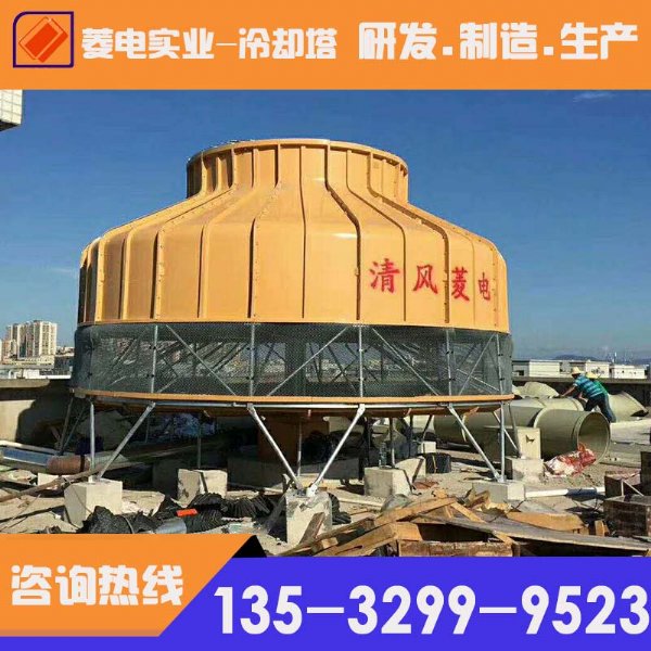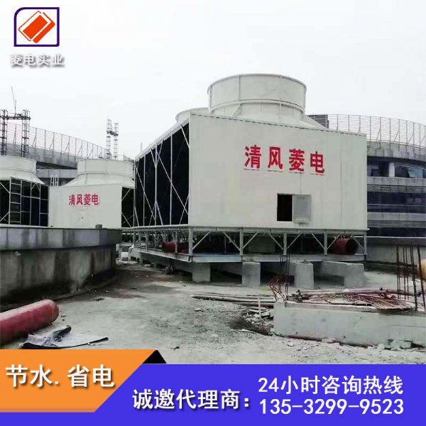 风机的作用下由底部入风网进入塔内,热水流经填料表面时形成水膜和空气进行热交换,高湿度高晗值的热风从顶部抽出,冷却水滴入底盆内,经出水管流入主机。一般情况下,进入塔内的空气、是干燥低湿球温度的空气,水和空气之间明显存在着水分子的浓度差和动能压力差,当风机运行时,在塔内静压的作用下,水分子不断地向空气中蒸发,成为水蒸气分子,