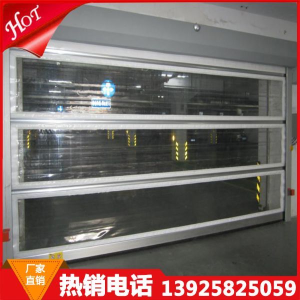 PLC、可编程序控制器,门上升下降速度可以调节,与各种保护装置兼容,双用按钮控制。全透明PVC软片,增加了透光性,3、车库内无其它出入口,遇有停电或故障开启