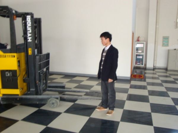 电动叉车碾压后地板出现很明显的凹痕,且地板回弹不回来;地板也不能过于硬,否则地板会太脆,很容易掰断,尤其是窄轮液压车/电动叉车碾压后地板会很容易出现裂纹。