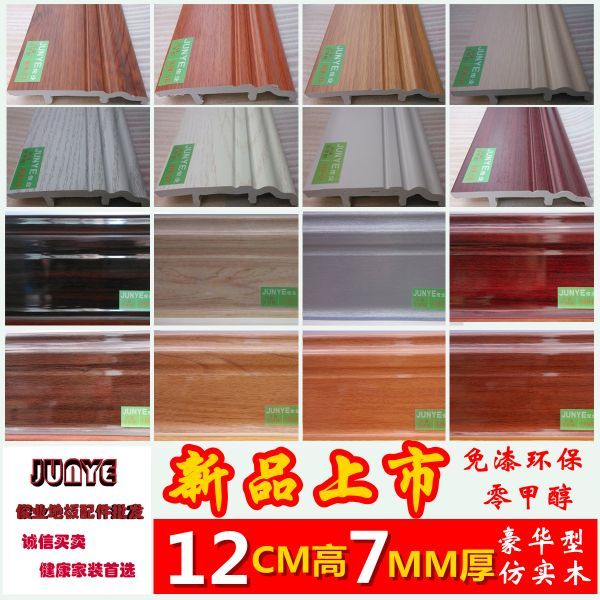 8分黑白色PVC地脚线 木纹防水塑料踢脚板隐钉墙角线佛山批发