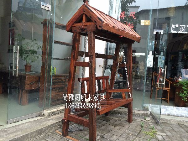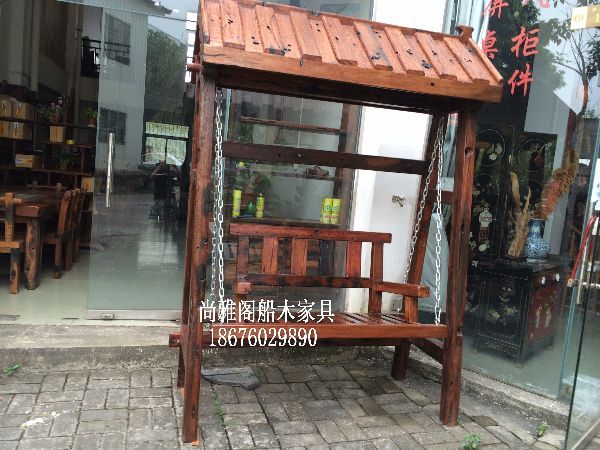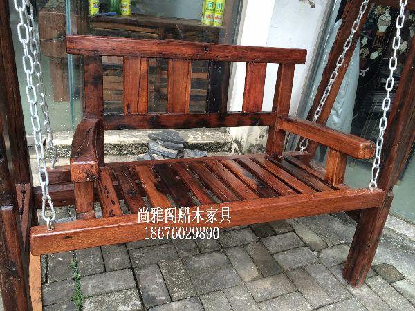 老船木实木秋千 户外吊椅室内摇椅 庭院双人秋千椅