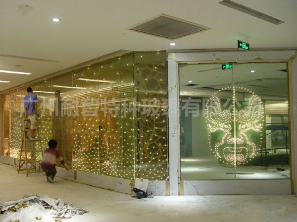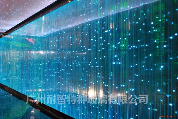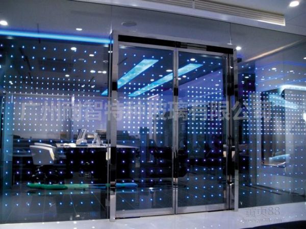新型LED发光玻璃以LED做光源,采用LED发光点无线连接技术,组成特定的图案、图像、标识等,植入玻璃中,并通过数控使其变幻多端,呈现出光电