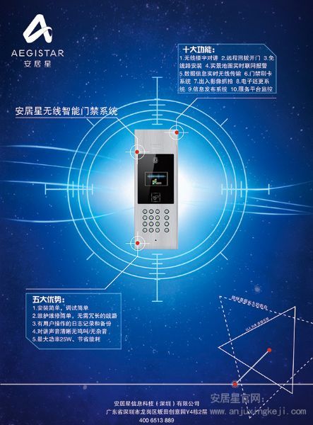 远程回拨开门:预设的手机或座机号码拨打门口机ID特有的号码实现远程开门。