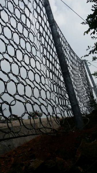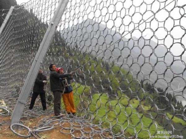 被动防护结构配置:钢柱、支撑绳、拉锚绳那、缝合绳、减压环