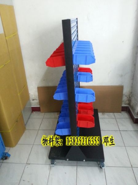 物料整理架以方孔挂板和百叶挂板为主要结构,结合背挂零件盒和各类