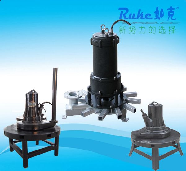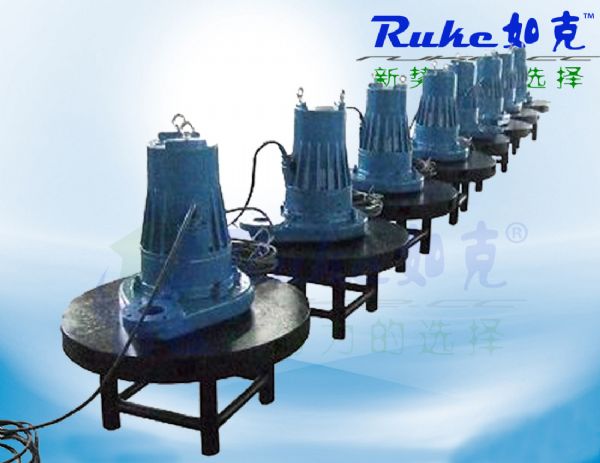 QXB型潜水离心式曝气机采用电机和叶轮直接传动,利用叶轮旋转所产生的离心力排开周围水形成低压区吸入水流同时,在叶轮进口处制造真空而吸入空气,在混气室中气与水充分混合形成均匀的气水混合液,在离心力作用下快速排出。