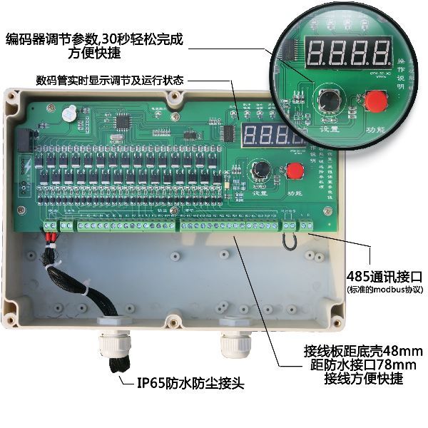 除尘器而设计的脉冲清灰控制仪。根据清灰方式的不同,分为在线清灰控制、离线清灰控制两种,针对不同型号除尘器